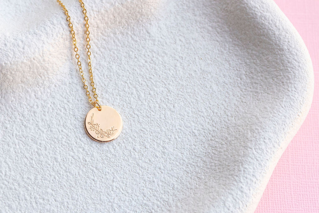 The pendant is 15mm in diameter, striking the perfect balance between subtle and statement. Suspended from a 45cm chain with a 5cm extender, this necklace offers versatility in length, allowing you to adjust it to suit your style or neckline.