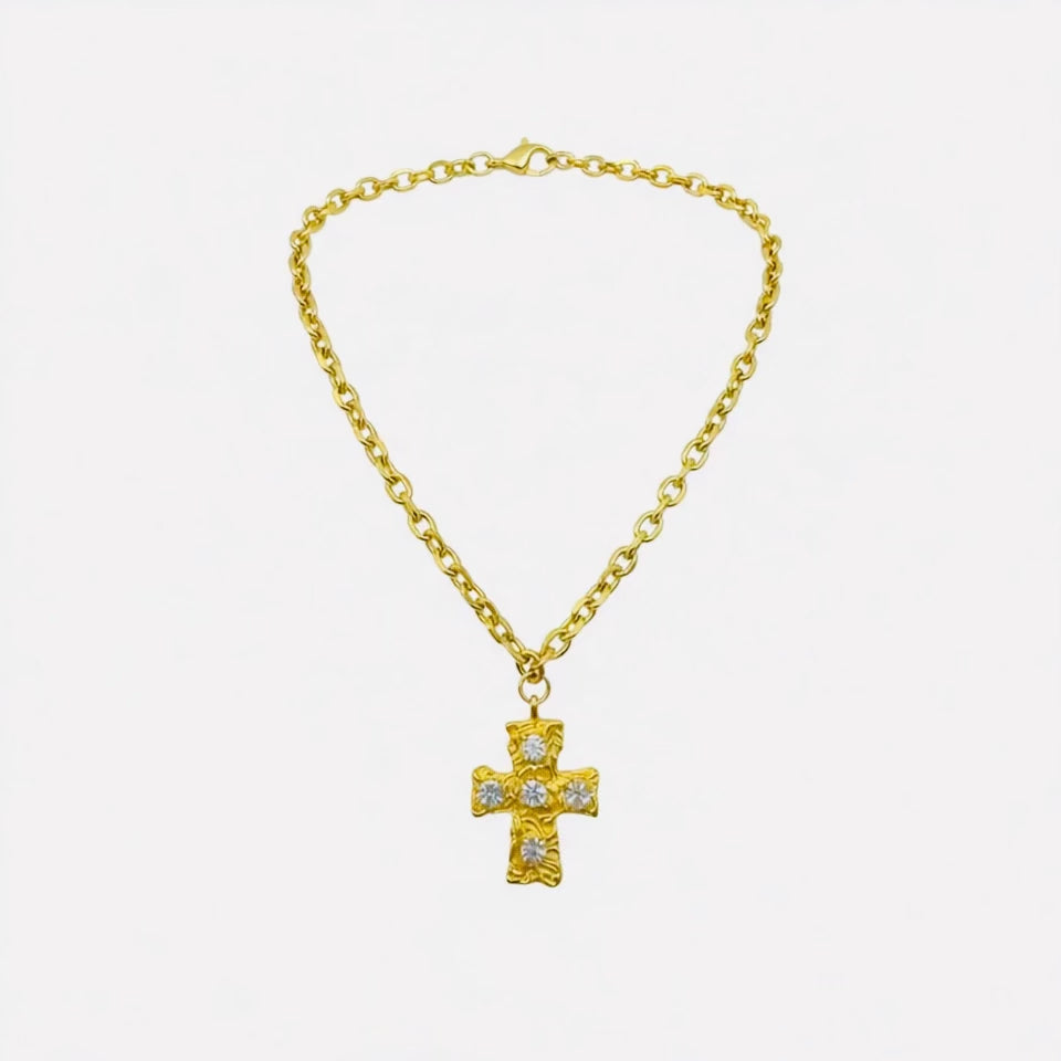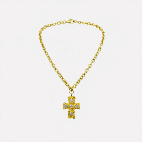 Meet The Isadora — our boldest vintage cross, strung on the thickest non-tarnish stainless steel chain and plated in radiant 18kt gold. Inspired by the name’s Greek meaning, “gift of Isis,” this iconic piece celebrates feminine strength, beauty, and timeless allure.